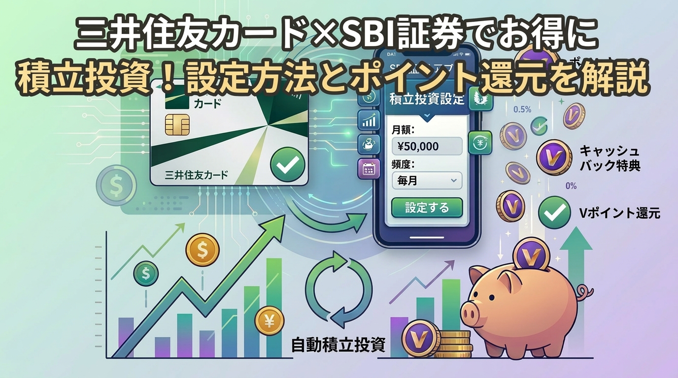 SBI証券でつみたてNISAや投資信託を積立する際、三井住友カードを使うと最大3%のVポイントが貯まります。この記事では、三井住友カード×SBI証券の積立設定方法とポイント還元の仕組みを解説します。