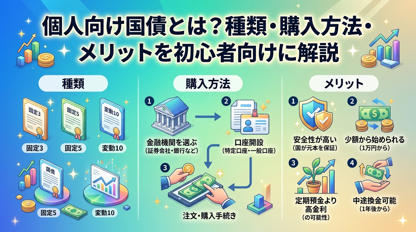 債券投資は安定した利息収入を得ながら、株式リスクを分散できる投資方法です。まずは安全性の高い個人向け国債から始めてみましょう。