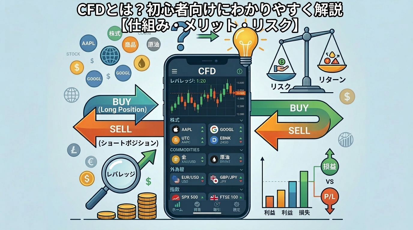 CFD(差金決済取引)は、株式・商品・為替など様々な資産を少ない資金で取引できる投資方法です。この記事では、CFDの仕組みからメリット・リスクまで初心者向けに解説します。