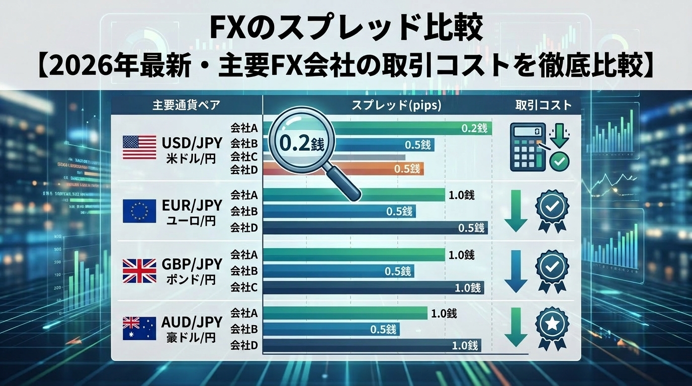 FX取引のコストで最も重要なのが「スプレッド」です。スプレッドの差が長期的な収益に大きく影響します。この記事では、主要FX会社のスプレッドを徹底比較します。